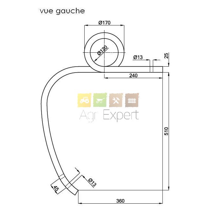 Dent de cultivateur double spire 25x25 H510 sous bâti EA45 grand dégagement droite