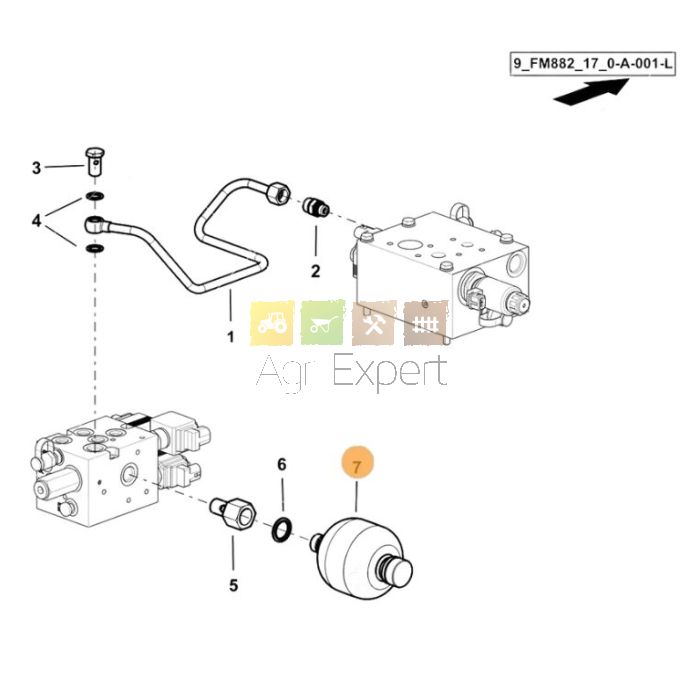 Accumulateur hydraulique n°7 pour tracteurs Deutz-Fahr, compatible avec les séries Agroclimber, Agrofarm, Agrotron, et Series 5 à 8