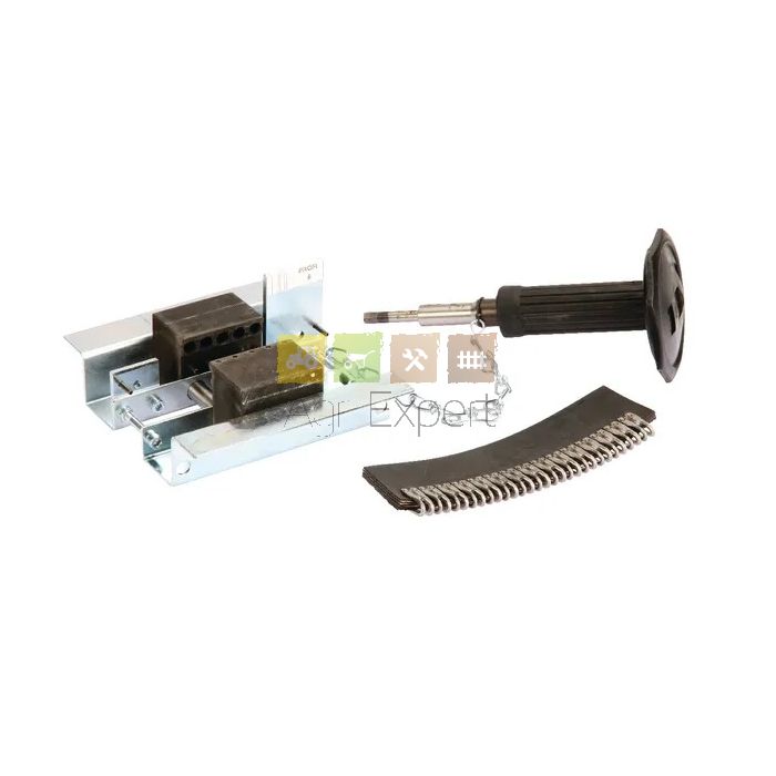 Appareil de production pour série moyenne ou pour agrafes de courroie jusqu'à 275mm en une seule opération (25 agrafes). Des courroies plus larges peuvent être jonctionnées par opérations successives. Livrée avec poinçon