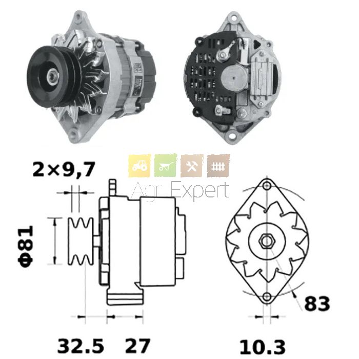 Alternateur 14V/65A tracteur Renault 68-12, Ceres Massey-Ferguson