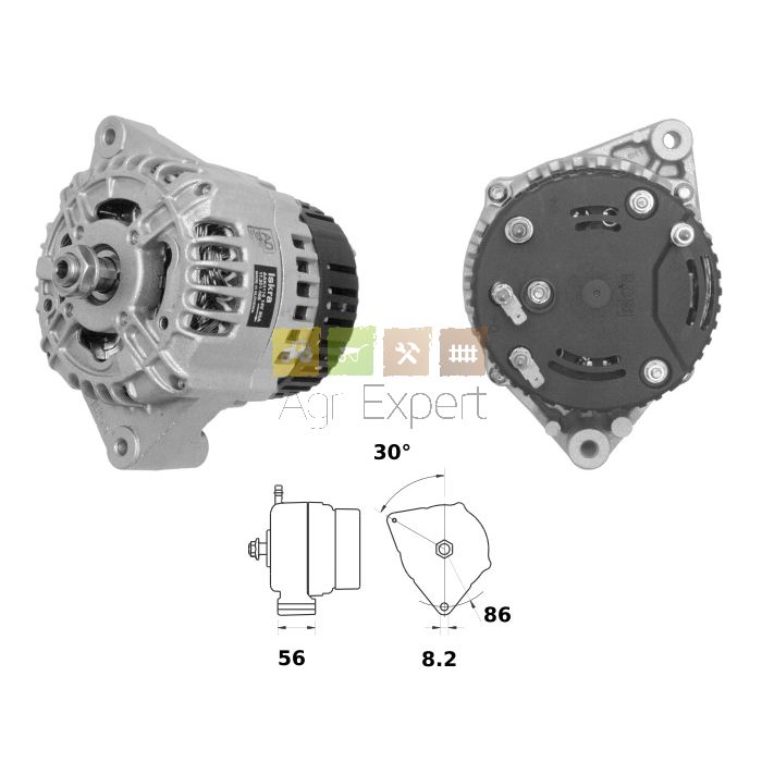Alternateur 14V 85AH tracteur Case IH CS, CVX, Lamborghini Agile, Racing, Formula, Landini Globus, Mythos, Same Dorado, Explorer, Laser, Silver, Titan, Massey-Ferguson, Valtra équivalent IA0666