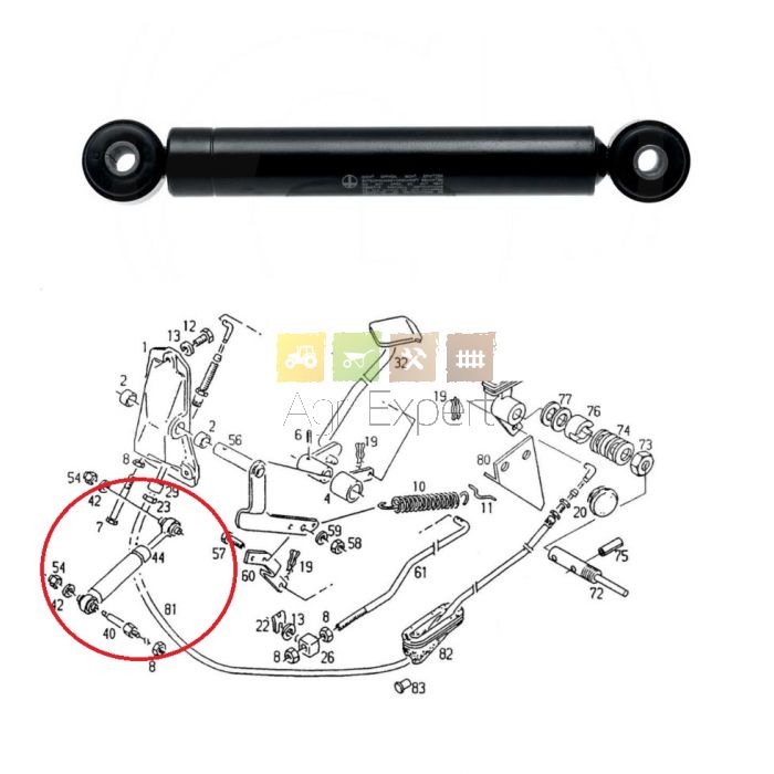 Amortisseur de pédale d'accélérateur tracteur Deutz-Fahr DX3.10, DX3.30, DX3.50, DX3.57, DX3.60, DX3.65, DX3.70, DX3.80, DX3.90, AgroPrima, AgroXtra, Hopfen