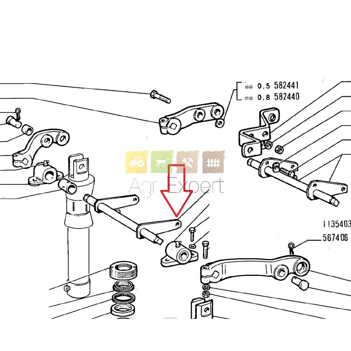 Arbre de controle de relevage tracteur Soméca SOM 20, SOM 25, Fiat 211, 211R, 215, 215R