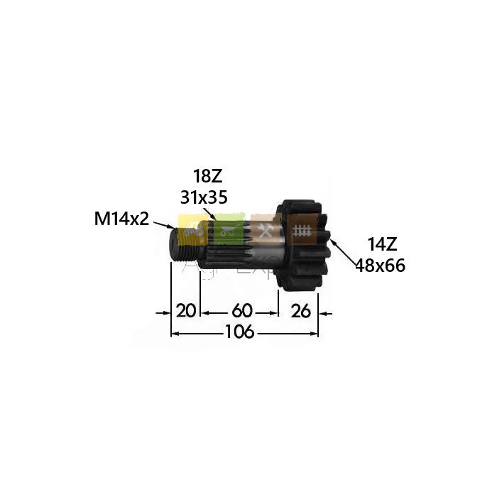 Arbre porte disque faucheuse rotative BCS AS5 Edelweiss, Rotex XR5, XR6, XR7, Rotex XT4, XT5, XT6, XT7 et NEVA R7, R8, NEVA F8, Rotex 5, Rotex 6, Rotex 7, Rotex R 6, Rotex R7 Avant NT