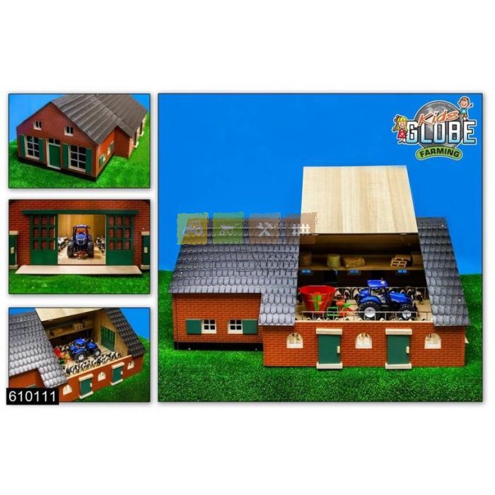 Ferme, en bois avec étable Kids Globe 1:32 dimensions 750x550x320 mm