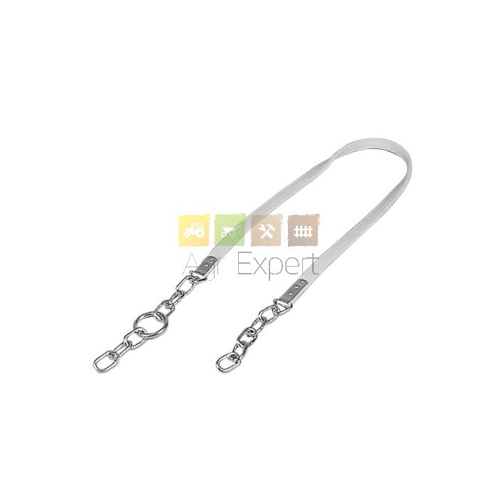 Attache ALFA de 190 cm avec double couture. Les parties métalliques se composent d'une partie haute avec 1 triangle Ø 8 mm et 5 maillons 8 x 40 mm et d'une partie basse avec 1 triangle Ø 8 mm et 3 maillons de 8 x 40 mm, 1 anneau de 10 x 55 mm et 3 maillons de 8 x 40 mm. Tous les éléments métalliques sont galvanisés.