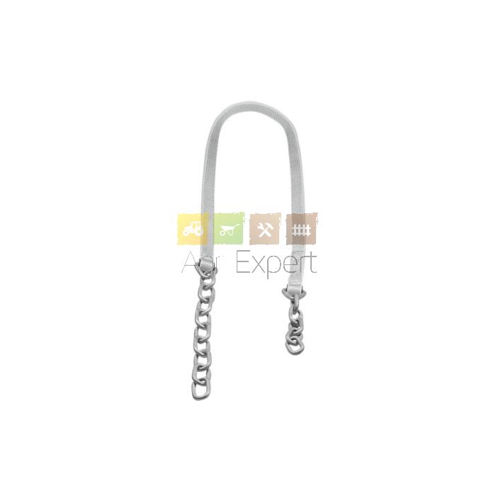 Attache bovin bavaroise de 193cm avec double couture en tôle zinguée, avec renfort métallique. Les parties métalliques se composent d'une partie haute avec 1 triangle et 5 maillons de 8 x 32 x 14 et d'une partie basse avec 1 triangle et 3 maillons de 8 x 40 x 18.