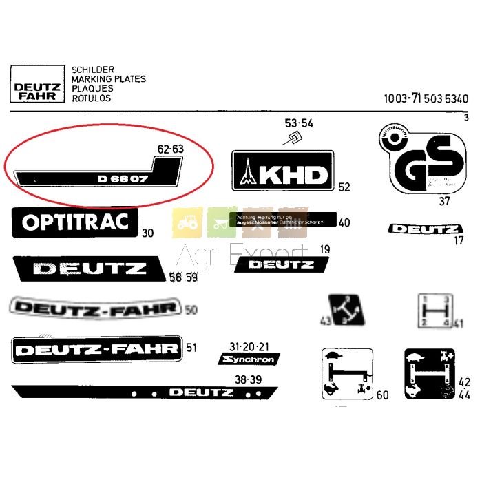 Autocollants de capot tracteur Deutz-Fahr D 6807 coté droit