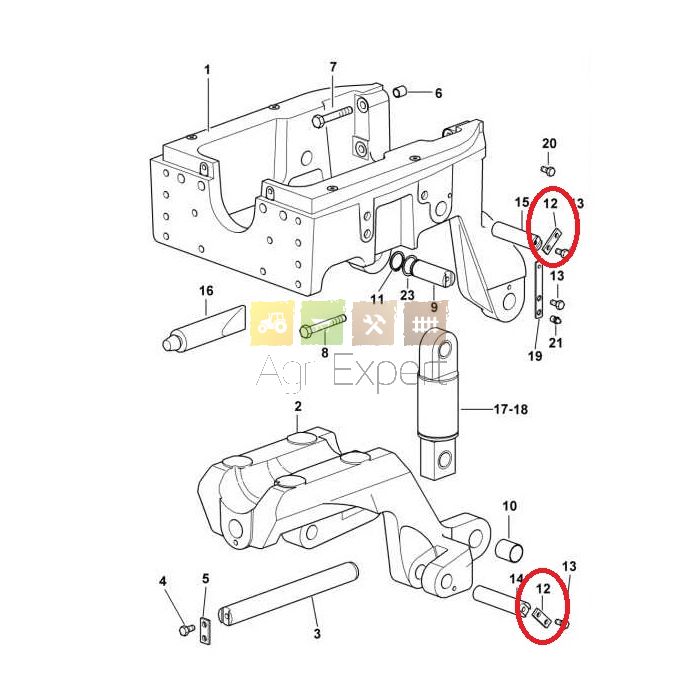 Plaque d'arret axe de pont avant suspendu tracteur Deutz-Fahr Agrotron, Same Fortis