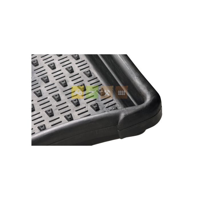 Offre la possibilité de faire suivre et d'emboîter 2 bacs pour former un pédiluve de plus de 4 mètres de long. Le premier bac sert de bain de rinçage pour enlever la saleté et les excréments résiduels des onglons permettant ainsi au second bain, véritable bain de désinfection, de rester plus longtemps exempt de souillures. Il faut alors utiliser plus longtemps la solution de désinfection. Très léger et souple, en polyéthylène antichocs, permettant de déplacer très facilement le pédiluve et de lui assurer une très longue longévité grâce à une grande stabilité. Le profilé se distingue par une grande capacité antidérapante. Une bonne accessibilité est ainsi garantie, ce qui permet aux animaux de se sentir en sécurité. Ils traversent plus calmement le pédiluve permettant alors un contact prolongé avec le désinfectant et une meilleure action. Le sol du pédiluve possède un profilé spécial à picots. La forme et la hauteur du profilé à picots veillent à ce que l'onglon de la vache soit écarté permettant ainsi au désinfectant de mieux atteindre ces points entre les onglons où il peut déployer son efficacité. Capacité de 200 litres, avec graduations.