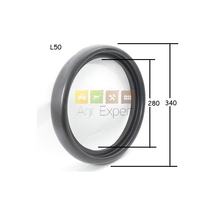Bandage caoutchouc Farmflex profil L Diamètre extérieur 340mm diamètre intérieur 280mm largeur 50mm pour roue plombeuse de semoir Lemken Compact-Solitair 9, Saphir 7, Saphir 8, Solitair 8, Solitair 9, Solitair 10, Solitair 12