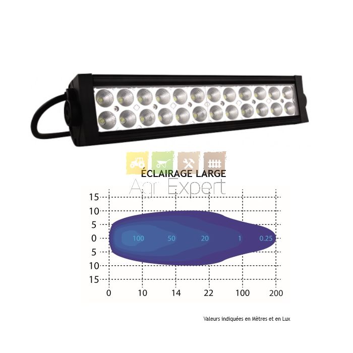 Barre d'éclairage 24 led 5750 lumen 72W. 12 -24V - IP 68 Dimensions L460 x P135x H115 mm.