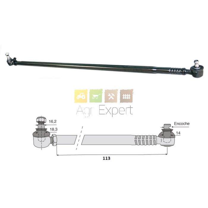 Barre de direction tracteur Case IH 323, 353, 423 réglable de 1180 à 1225 mm