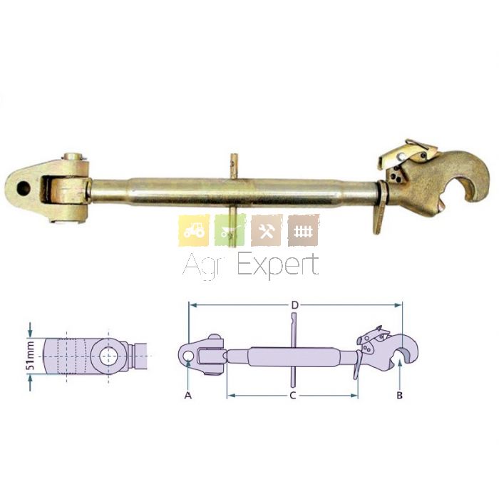 Barre de poussée JohnDeere genouillère D20,3 & crochet - L590 à 1030 mm
