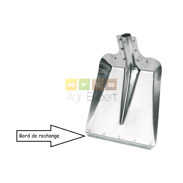 Borde de rechange pour pelle en aluminium épais 1,8 -à 2,0 mm en acier renforcé. Se fixe avec 4 rivets. Vendu par multiple de 10.