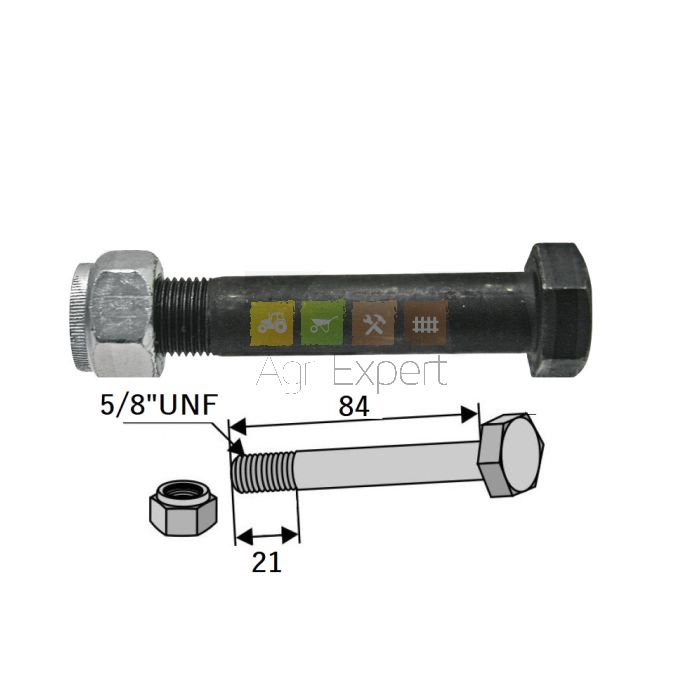 Boulon 5/8x84 avec écrou pour fléau débroussailleuse McConnel, Bomford, Twose, 5/8" UNF x 84 mm 10.9