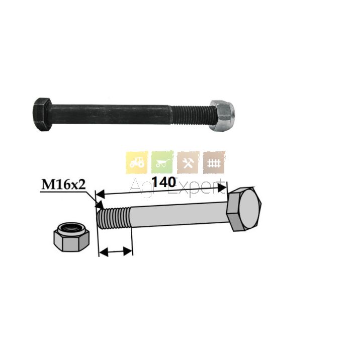 Boulon M16x2 mm longueur 140 mm pour marteau de broyeur