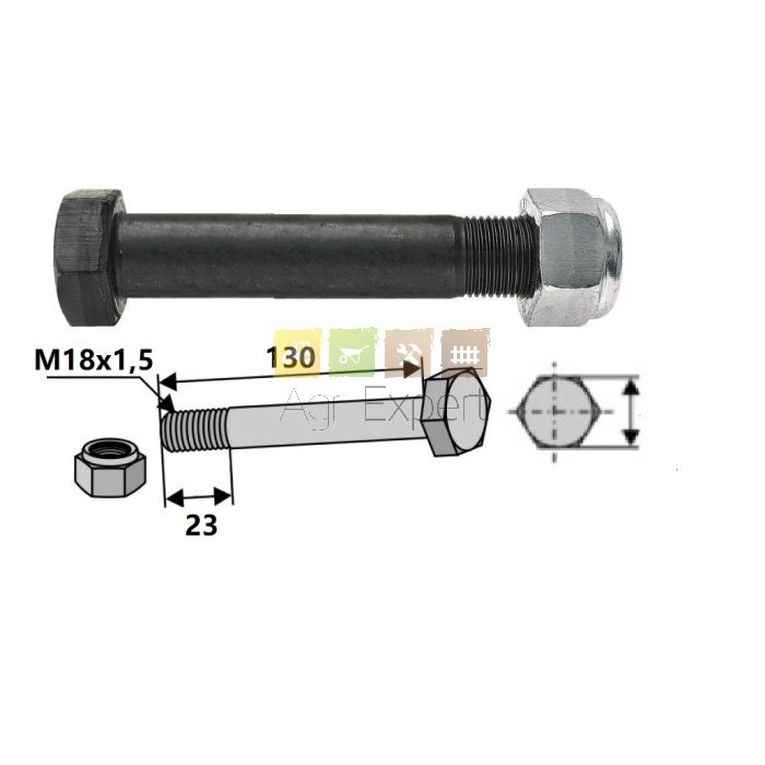 Boulon M18 x 1.5 x 130 mm longueur filetage 23 avec écrou frein