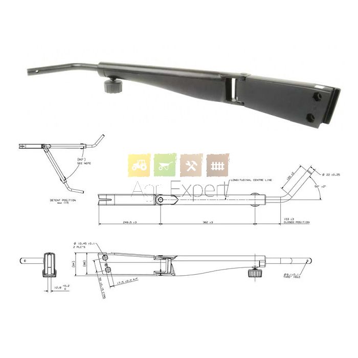 Bras de rétroviseur télescopique Fiat G170, G190, G210, G240, M100, M115, M135, M160, Ford 8160, 8260, 8360, 8560, 8670, 8670A, 8770, 8770A, 8870, 8870A, 8970, 8970A, TM115, TM125, TM135, TM150, TS100, TS110, TS115, TS90, TV140, Case MXM