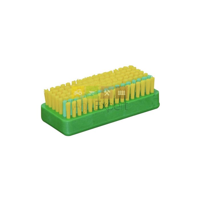 Brosse lave-mains avec dos en plastique solide et une forte rangée de poils en polyester. Elle est idéale pour le travailleur manuel. Dimensions : 105 x 45 x 30 mm.