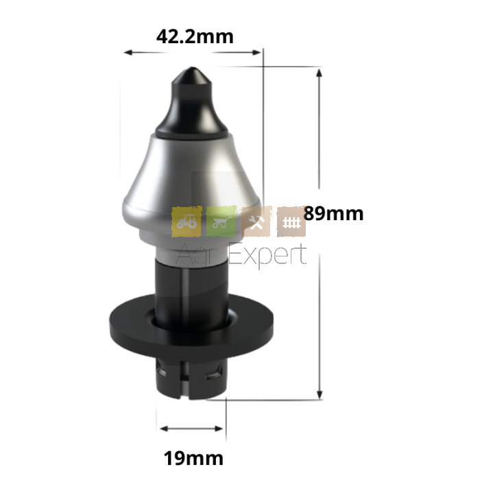Corps en acier Heavy-duty avec pointe en carbure à fond plat. Soudure à 360 degrés pour une connexion de soudure maximale et dureté élevée de la tête contre l'usure