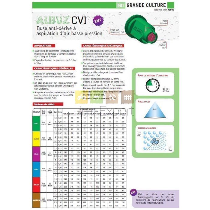 Buse anti-dérive Albuz CVI 110° ISO insert Céramique buse injection d'air Homologué ZNT