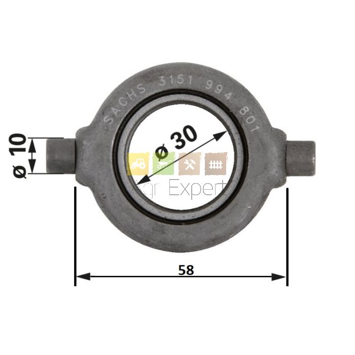Butée d'embrayage Sachs 30 x 54 x 76 maneton Ø10 mm, droit