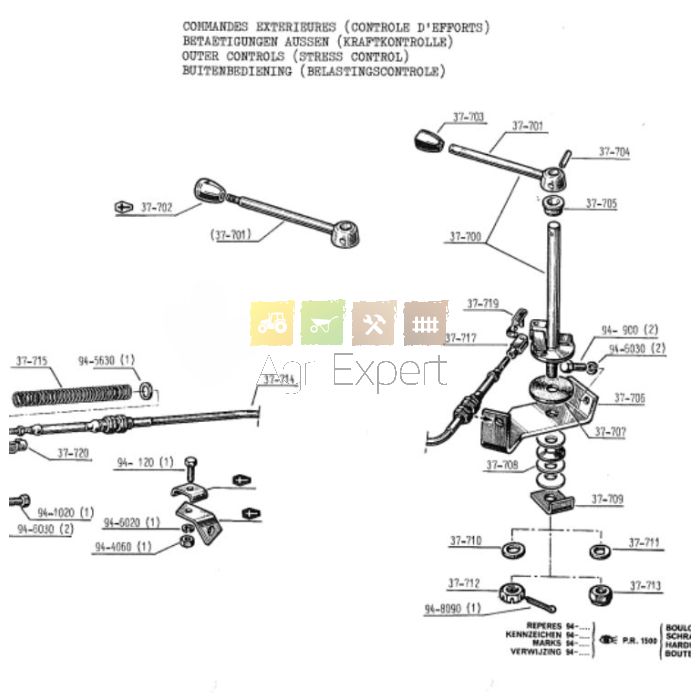 Câble de commande de contrôle d'effort 37-714 tracteur Renault R 50 type 7213, R 60 type 7253, R 460 type 7257