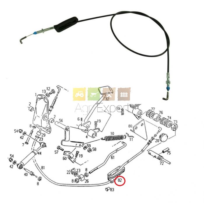 Câble d'accélérateur à main tracteur Deutz-Fahr DX3.10, DX3.30, DX3.50, DX3.57, DX3.60, DX3.65, DX3.70, DX3.80, DX3.90, DX4.07, DX4.17, DX4.31, DX4.47, DX4.51, DX4.56, DX4.57, DX6.06, DX6.07, DX6.16, DX6.17