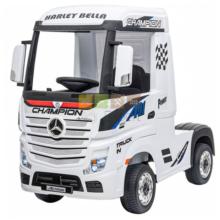 Camion electrique enfant Mercedes Benz Actros Blanc avec pneu gomme, Télécommande parentale 2,4 Ghz, Démarrage progressif