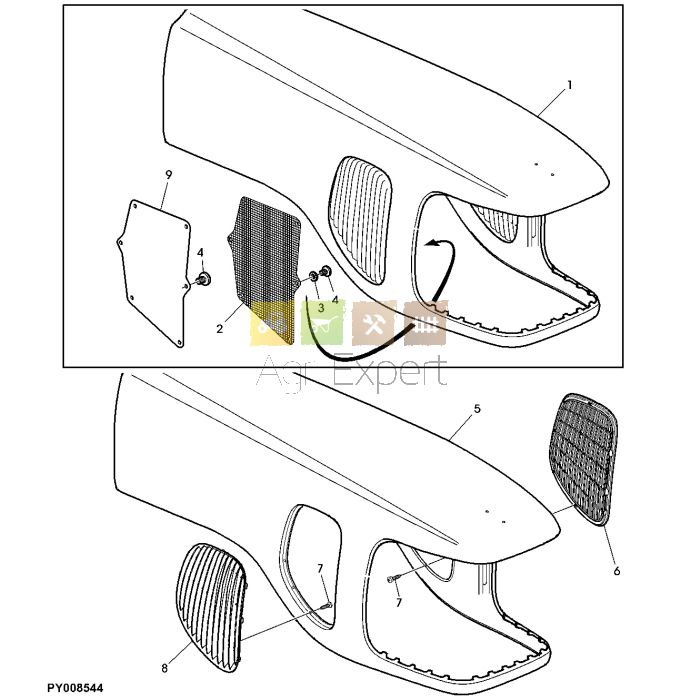 Capot moteur John-Deere 6215, 6520, 6615, 6820, SE6320, SE692