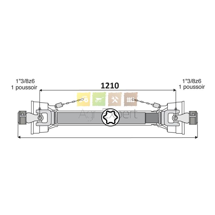 Cardan transmission longueur 1.4M croisillon 36x89 mm tube profil type Walterchied étoile W2500