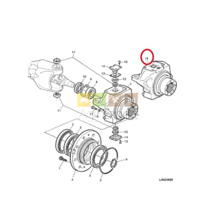 Carter de réducteur gauche avec frein sur les roues avant ZF AS2045 tracteur John-Deere 6810, 6910, 6910S, 6520, 6620, 6820, MARKED 4475306300