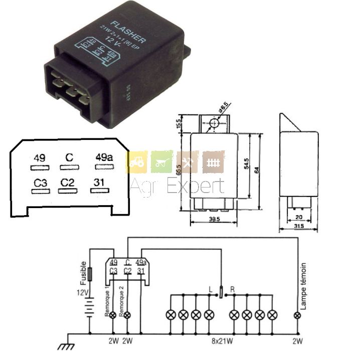Centrale clignotante 12 volts Case IH, Massey Ferguson, Renault, Valmet, Fendt, Deutz, John Deere, 090210001, 090 210 001