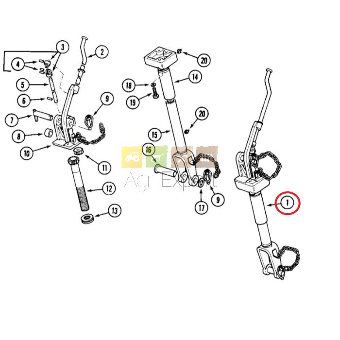 Chandelle de relevage avec manivelle tracteur Case IH 2120, 2130, 2140, 2150, 2120 PRO, 2130 PRO, 2140 PRO, 2150 PRO