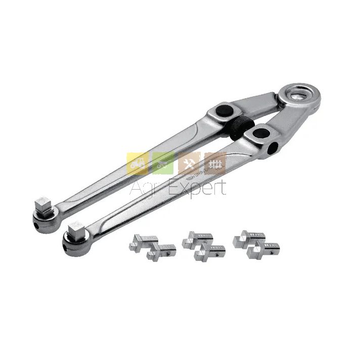 - Cette clé forgée dans un acier au chrome vanadium se règle comme un compas, en agissant sur la vis centrale.