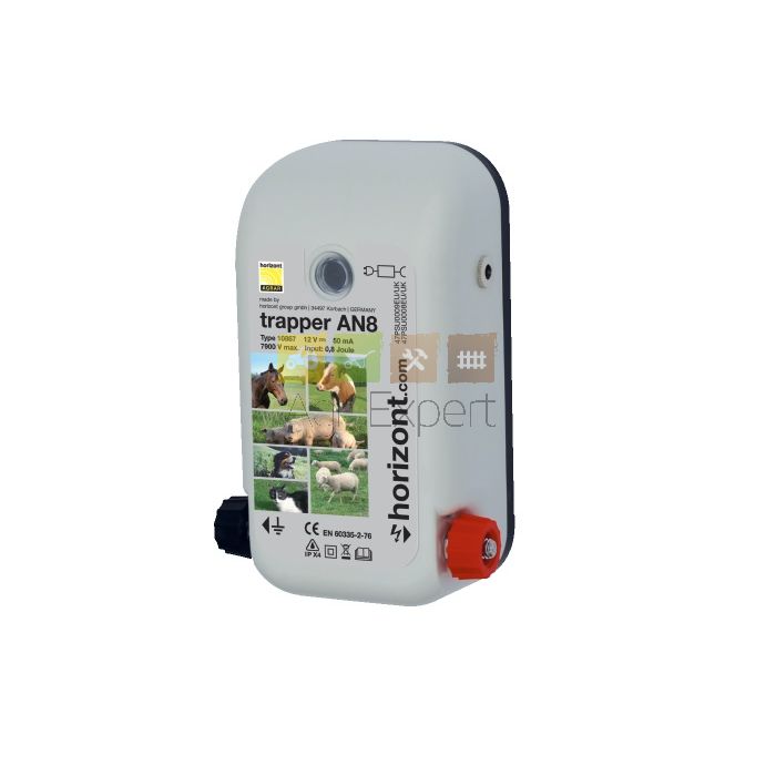 Electrificateur mixte batterie ou secteur pour clôture électrique, Horizont Trapper AN8 s'utilise en mode batterie 12 Volts et sur secteur 230 Volts. Il convient très bien dans le segment amateur que pour le gardiennage des animaux fragiles.