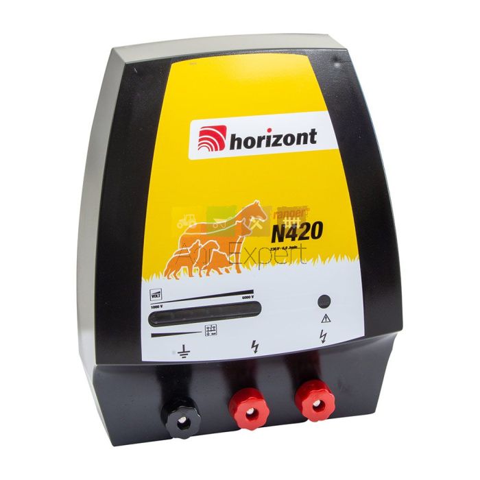Electrificateur secteur 230 volts 6 joules modèle Ranger N420 (N80) avec 2 sorties. Une sortie de puissance forte et une sortie de puissance faible. De plus, il y a une sortie pour la terre. La sortie de faible puissance est spéciallement utilisée pour l‘entourage des cours maisons afin que l'être humain ne soit pas bléssé. • Electrifcateurs applicables à tout type d‘installation, longueur électrifiée norme CEE 100KM, intensitée 6 joules et puissance 10500 volts. • Les impulsions permettront à l‘énergie d‘être à la fois dissuasive et non traumatisante tout au long de la clôture • Les impulsions fonctionnent très bien dans les conditions de résistance importante (crinière ou poils des animaux, ou dans des conditions de sols secs)