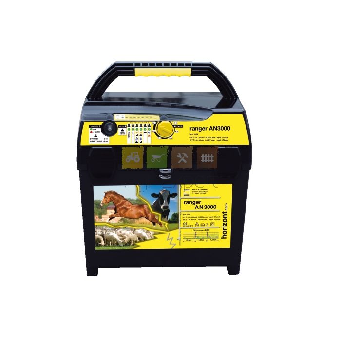 Electrificateurs Horizont Ranger AN 3000 est un appareils à pile 9V, batterie 12V, secteur 230V transformateur non fourni puissants qui peut être utilisés pour garder des moutons et se protéger des animaux sauvages.
