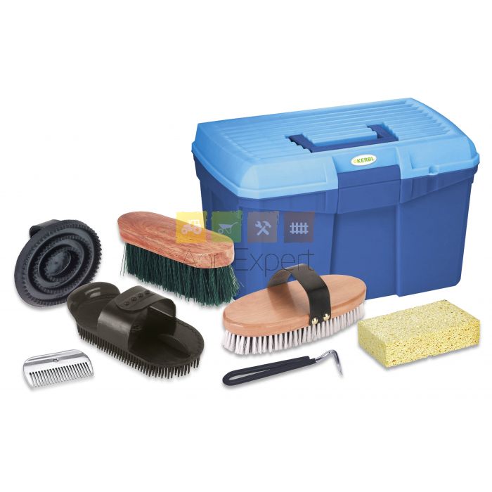 Coffre de pansage pour les chevaux. Complet 7 pièces.