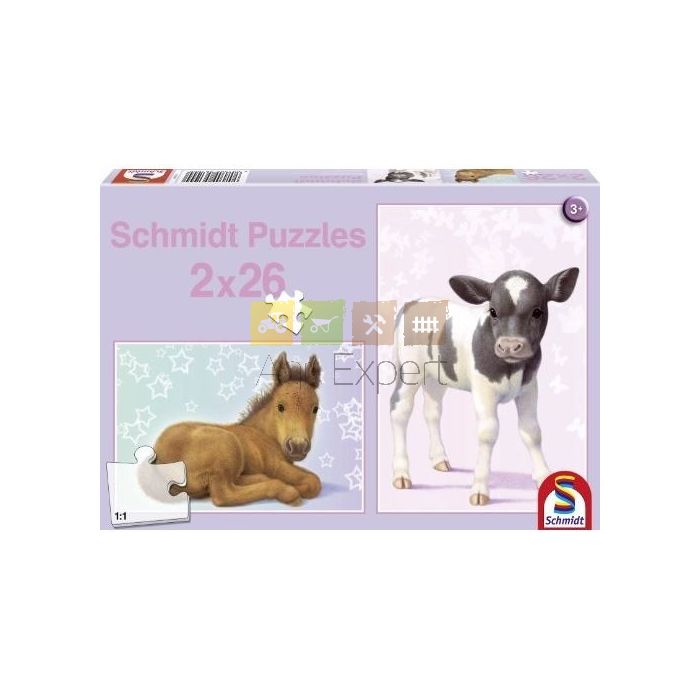 Coffret composé de 1 puzzle 26 pièces poulain et 1 puzzle 26 pièces veau.