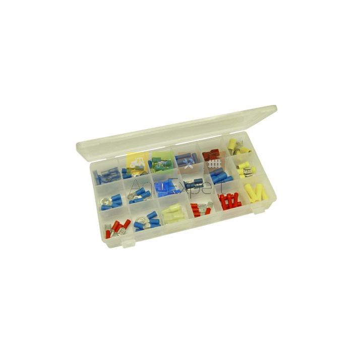 5 x cosses à œil bleues Ø 8, 5 x cosses plates femelles isolées jaunes 6.3,