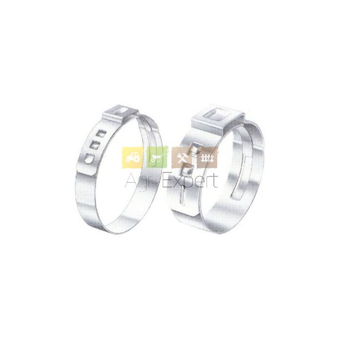 Collier a 1 oreille plage de serrage 17,8x21 mm en acier inoxydable. Marquage du diamètre sur le produit. Conforme à la norme DIN 1.4301.