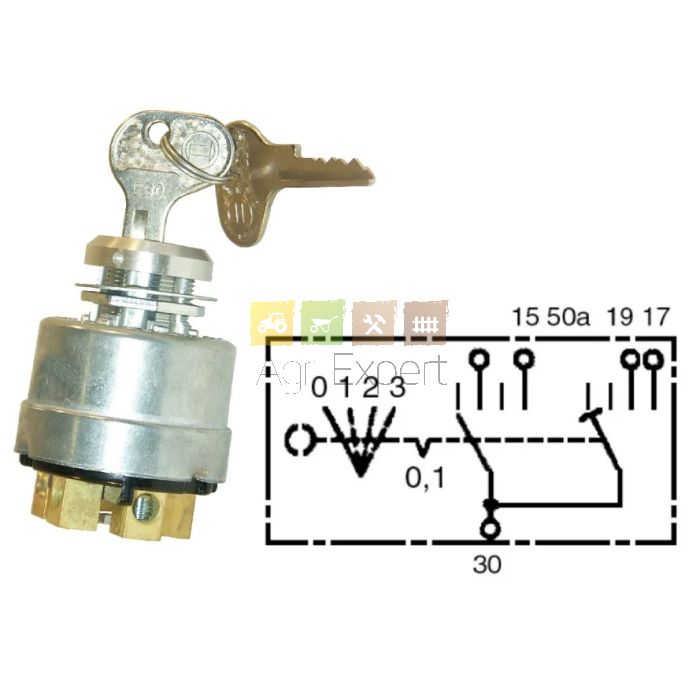 Commutateur de démarrage à clé avec préchauffage BOSCH pour engins CLARK, FENDT, Deutz, Liebherr, Massey Ferguson, Manitou, MWM, Renault, Poclain