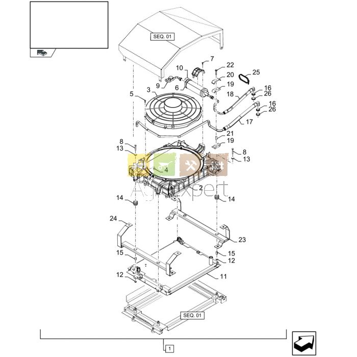 Kit Condenseur de climatisation tracteur New-Holland TN65F, TN70F, TN75F, TN80F, TN90F, TN55V, TN65V, TN75V, TN65N, TN75N, Vendangeuse VN2080, VN240, VN260v Case IH JX