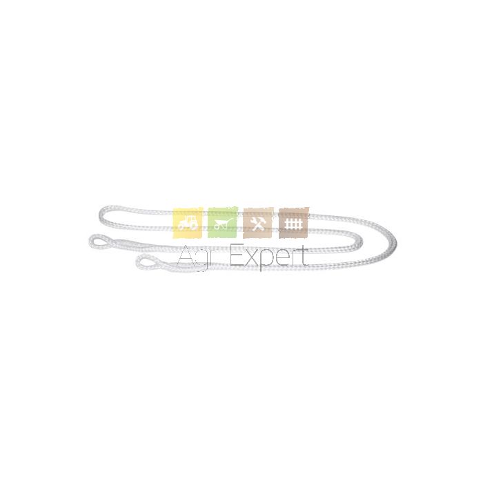 Lac de vêlage en perlon blanc avec 2 boucles et tissage plat pour éviter les blessures.