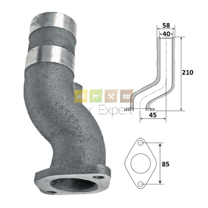 Coude d'échappement Case IH 644, 645, 744, 844, 844S, 844XL
