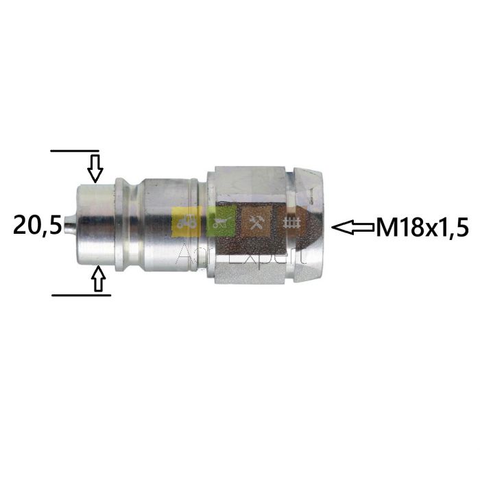 Coupleur hydraulique Push-Pull 1/2" Mâle, Prise rapide à Clapet filetage M18x1,5 matériel agricole Amazone, Krone, Fella, Rabe, Lemken, Maschio, Alpego, Kuhn, Carré...