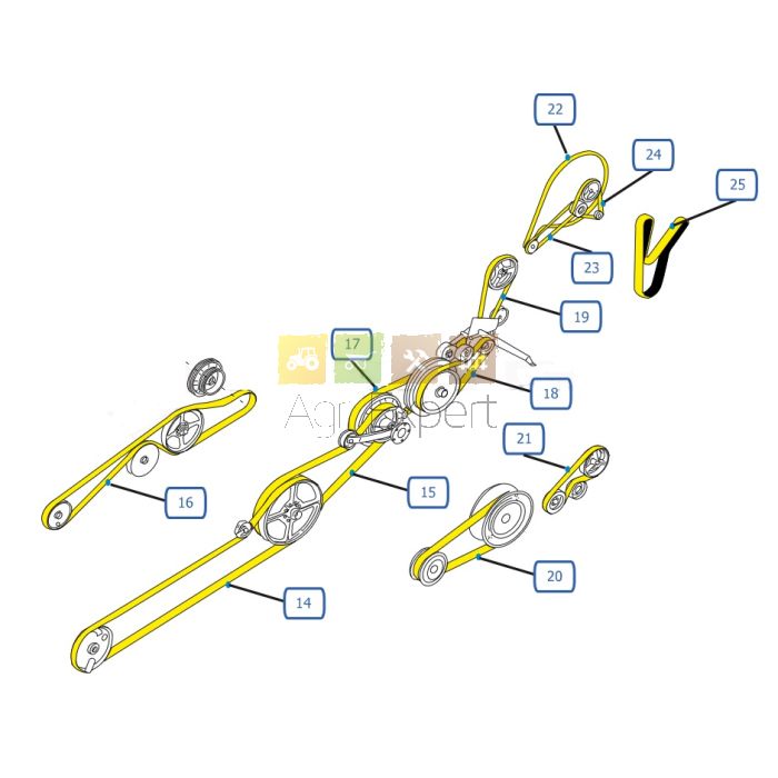 Courroie d'entrainnement de l'élévateur de grains pour moissonneuse batteuse New-Holland CX 720, CX 740, CX 760, CX 780, CX 820, CX 840, CX 860, CX 880, CX 8030, CX 8040, CX 8050, CX 8060, CX 8070, CX 8080, CX 8090