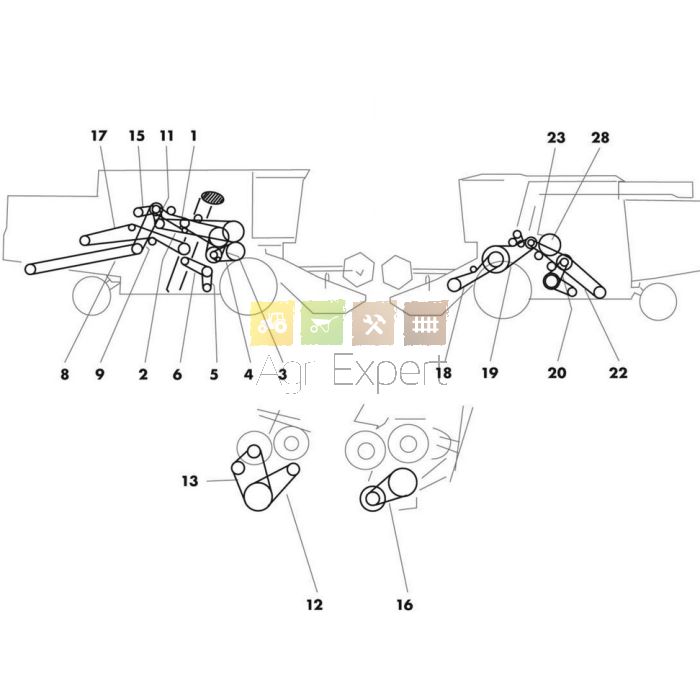 Courroie d'entraînement élévateur otons pour moissonneuse batteuse Deutz-Fahr 5670, 5680, 5690, 6040, 6060, 6090, 5650H, 5650HCom3, 5660HCom3, 5660HTS, 5660HTS Climber, 5660HTSCom3, 5665HTSCom3, 5680H, 5690HCom2, 5690HCom3, 5690HTS, 5690HTSCom2, 5690HTSCom3, 5695HTSCom3, 6040HTS, 6060HTS, 6060HTSClimber, 6065HTS, 6090HTS, 6095HTS, C9205TS/TSB, C9206TS/TSB, Topliner 4060DAL, 4065DAL, 4068DAL, 4075DAL, 4080DAL, 4090DAL